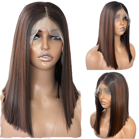 Nuevo estilo 13x4 pelucas delanteras de encaje Bob recto sedoso de colores mezclados para uso diario-Negro